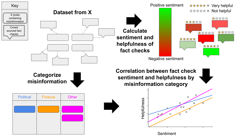 My capstone project focuses on analyzing the effectiveness of different fact-checking formats. Prior research suggests that fact checks that are positively phrased, concise, and created soon after the original misinformation are more effective. The data for this study comes from fact-checks created on the Community Notes program on X.