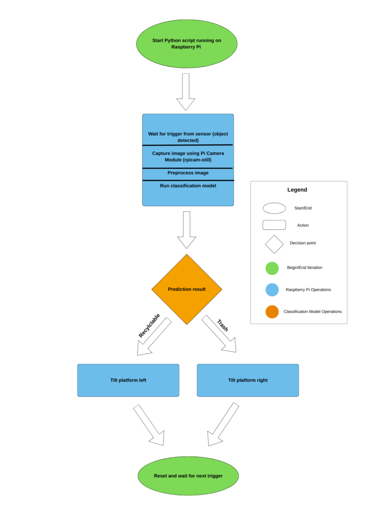 This project uses image classification to identify different types of trash and physically sort them into separate bins using servo-controlled hardware.
